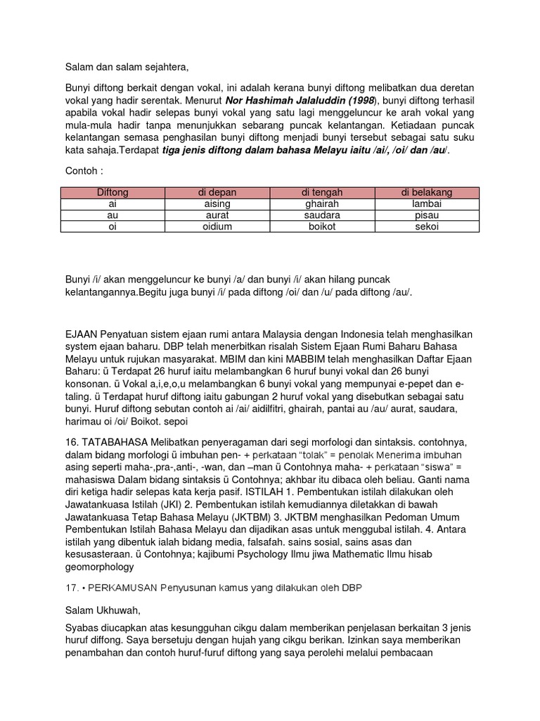 Dunia Pendidikan Utusan Online - memuatkan pelbagai bahan menarik tentang dunia pendidikan Malaysia merangkumi Aktiviti Album Gaya Hidup Sains Teknologi Kerjaya Agama Disiplin. Kedua diftong ini dipakai bila و dan ي berada setelah huruf berbaris fathah. 15 Yang manakah padanan yang betul bagi contoh perkataan yang mengandungi rangkap vokal dan diftong.